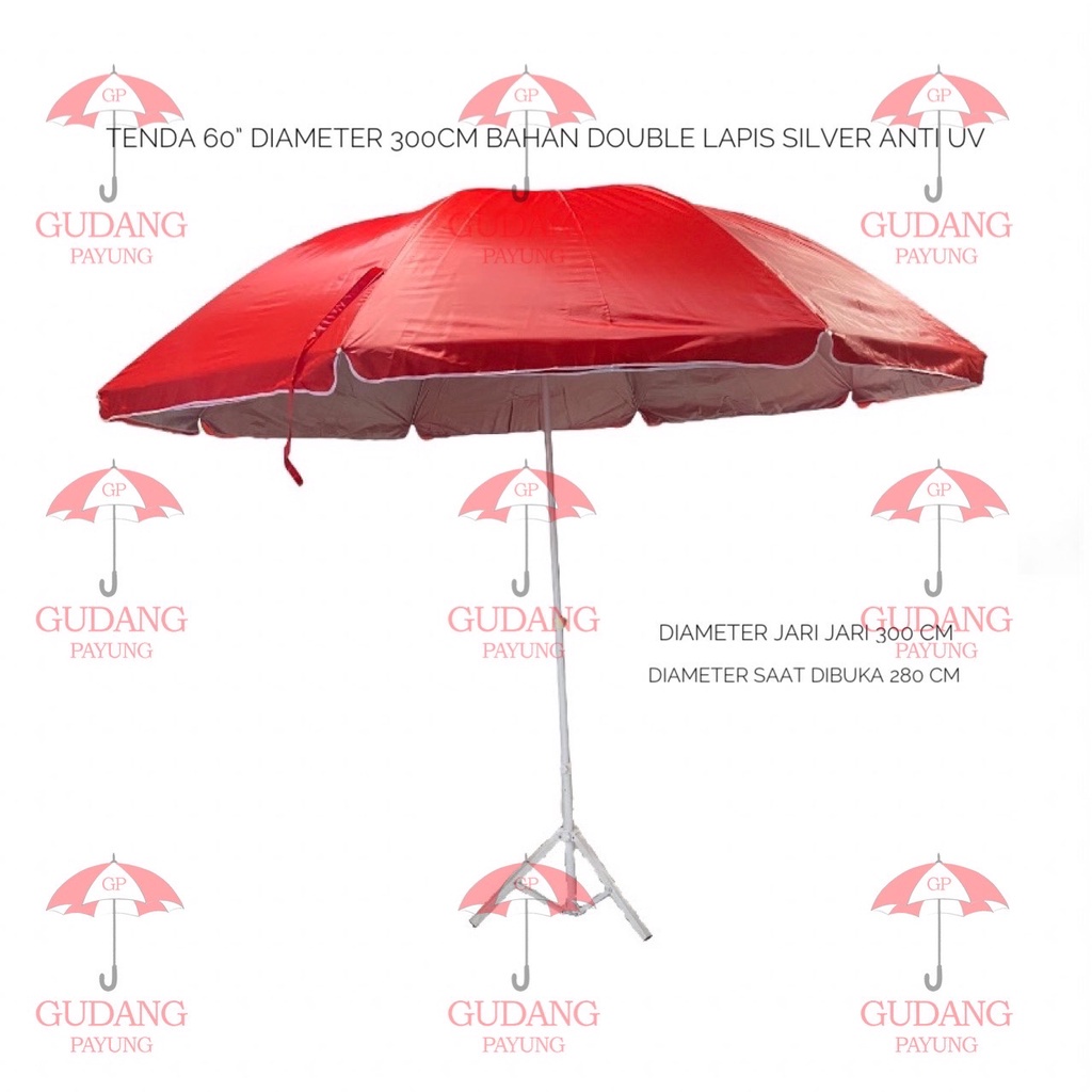 Payung Tenda Pantai Jualan 60 inch BAHAN DOUBLE Diameter 300 cm ANTI UV DALAM LAPIS SILVER