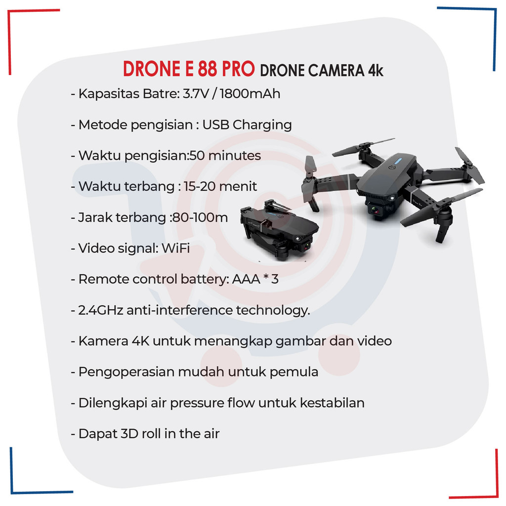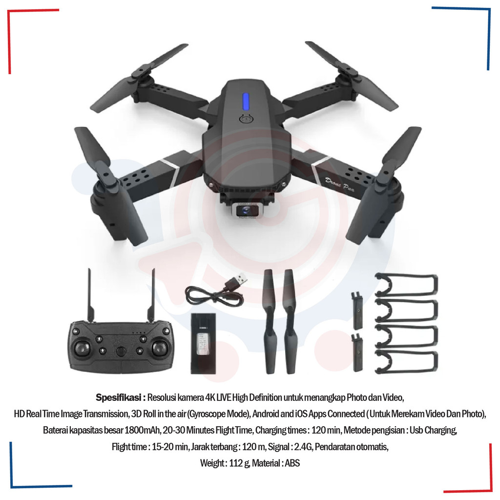 Drone E88pro 4K Ultra HD Foldable Drone Lipat Single Camera