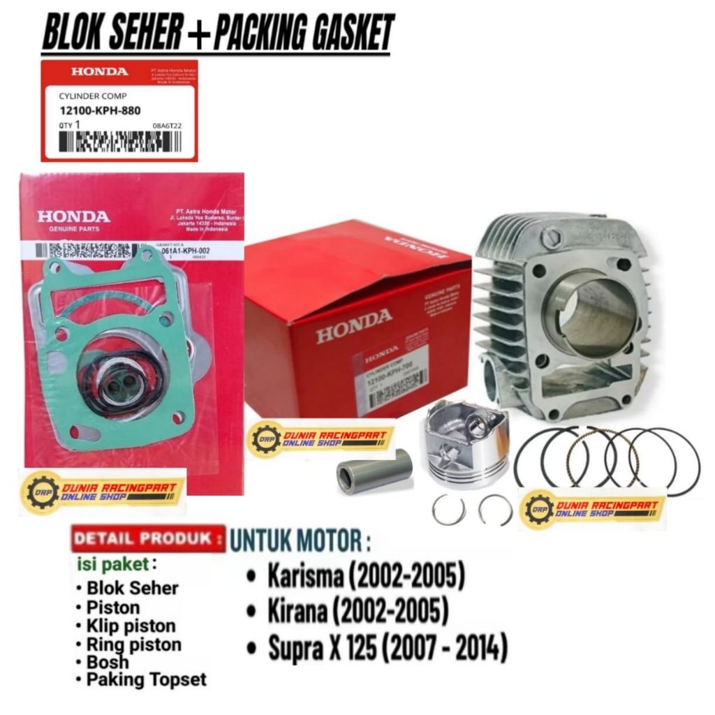 Blok Seher Standar Kharisma Supra X 125 Kirana Blok Seher Cylinder+Topset KPH