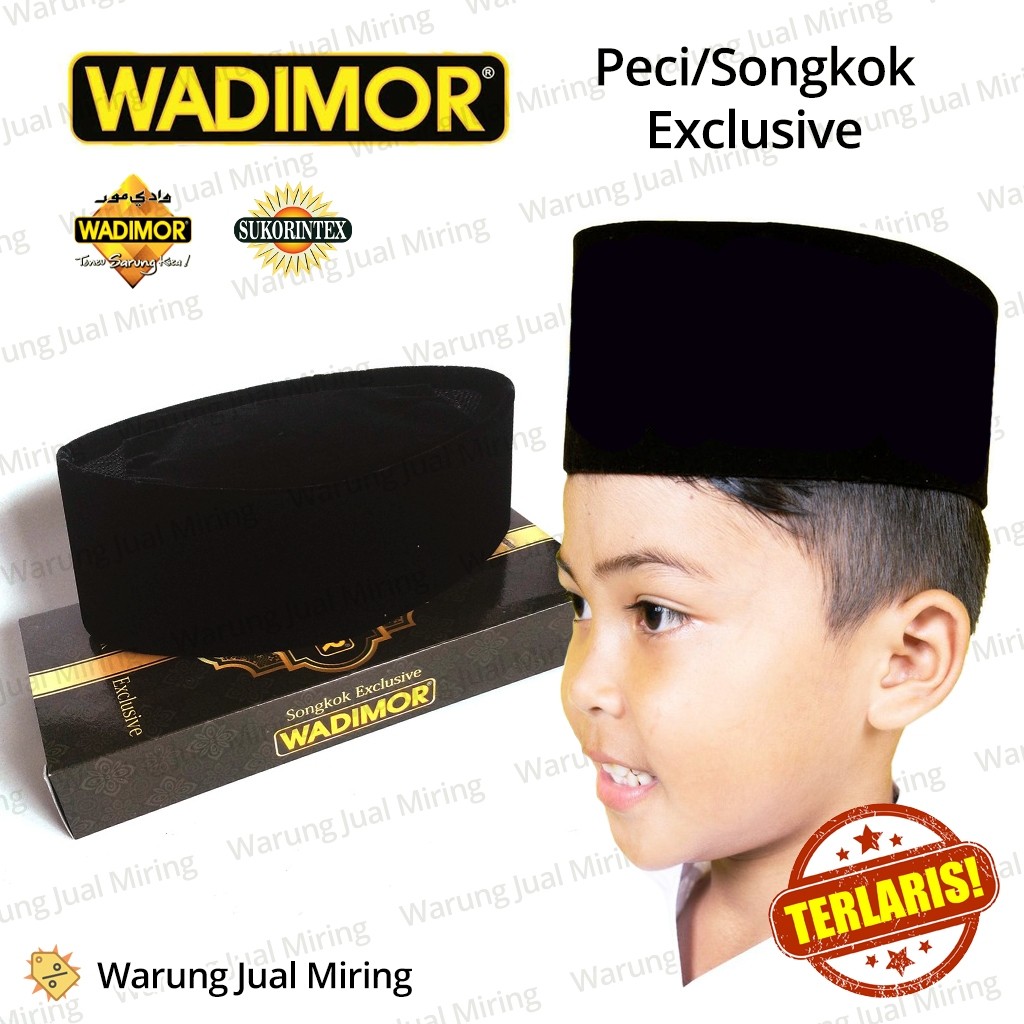 Songkok Anak WADIMOR Peci Hitam Polos Remaja Tanggung Dewasa Laki Nasional Kopiah Premium Original Beludru Balita Muslim