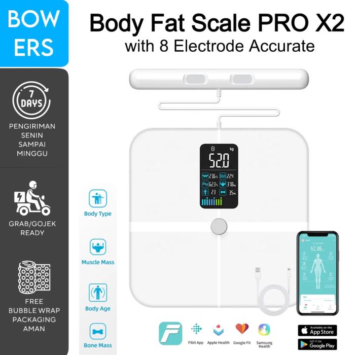 SMART BODY FAT SCALE PRO X2 WITH HANDLE BAR - TIMBANGAN PENGUKUR BADAN LEMAK OTOT WITH FITDAYS APP - PRO X2