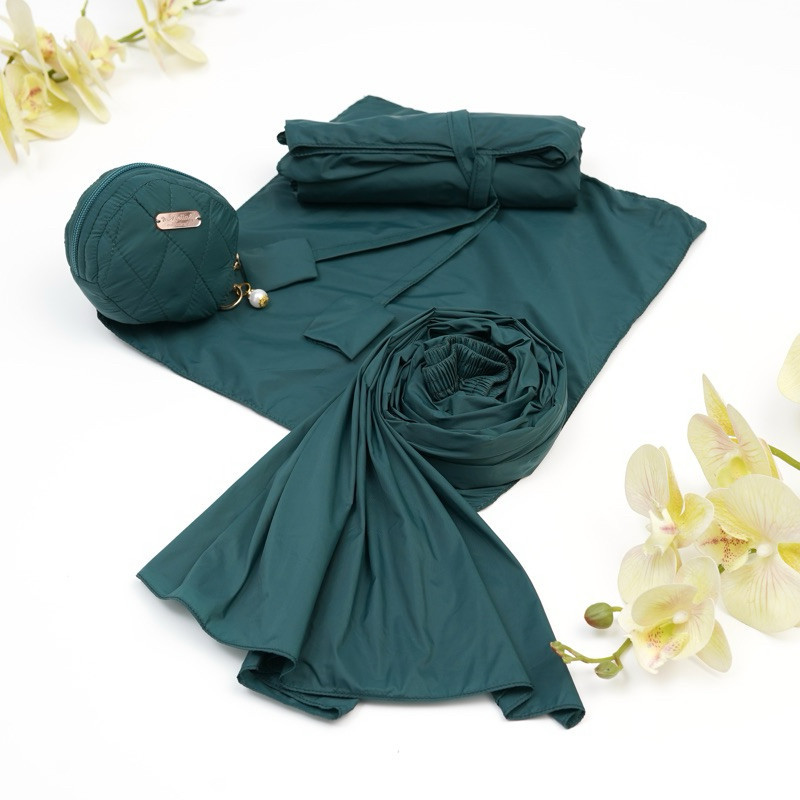 Mukena Mini Travel Caspia Series Parasut Korea Premium Jahit Tepi Resleting Dagu Tas Bulat