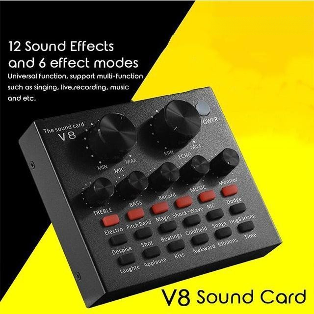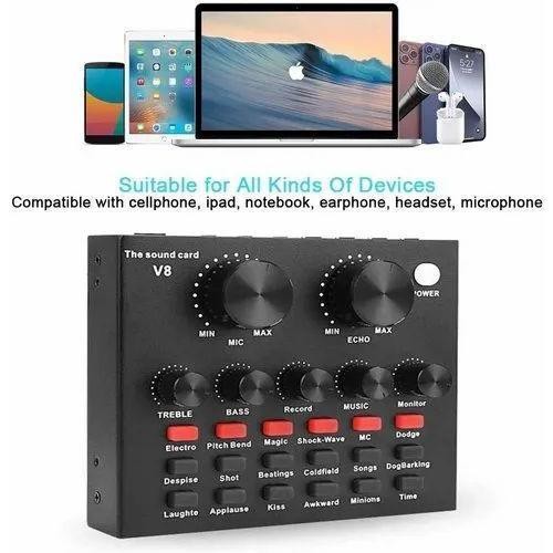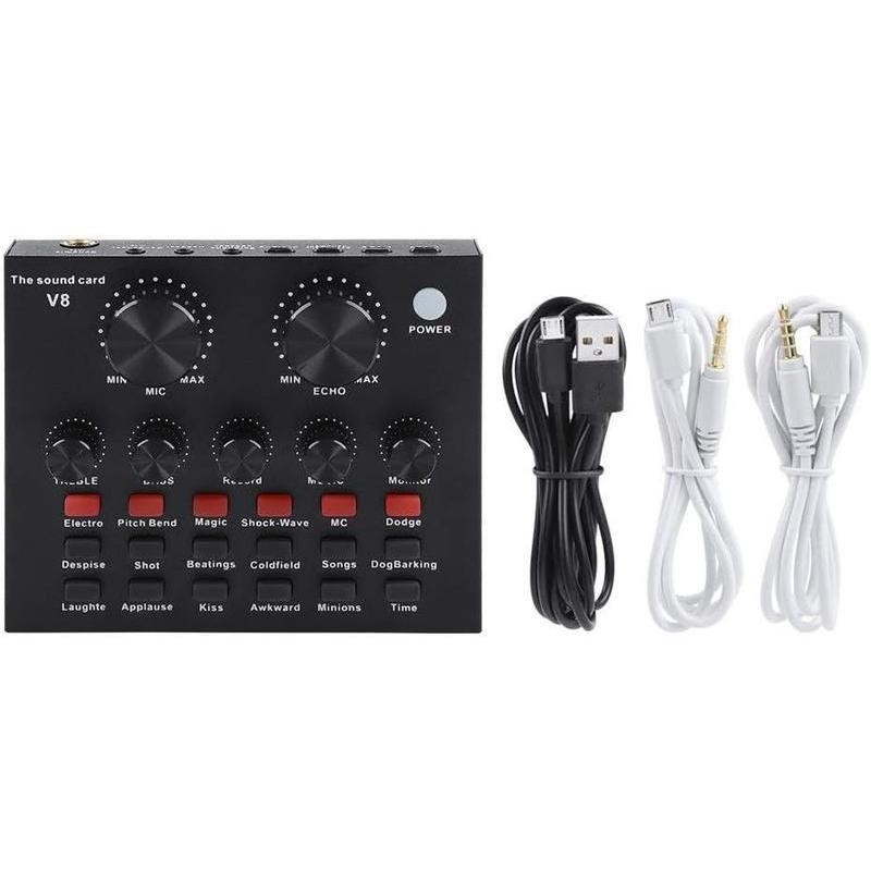 V8-LIVE SOUND CARD USB EXTERNAL V8 KARAOKE RECORDING MOBILE AUDIO MIXER AUDIO LIVE BROADCAST