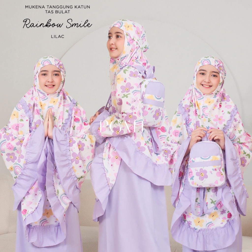 PUSAT GROSIR MUKENA TASIK - MUKENA ANAK KATUN TAS BULAT MOTIF KUROMI/ KUROMI RAYON 2IN1/ RAINBOW SMILE/ MY MELODY PINK TAS BULAT
