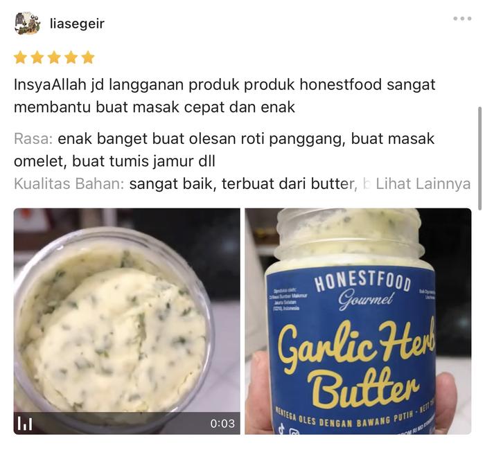 Garlic Butter HONESTFOOD/Mentega Bawang Putih Premium/Bahan Makanan/Olesan roti/Topping Pasta/Steak