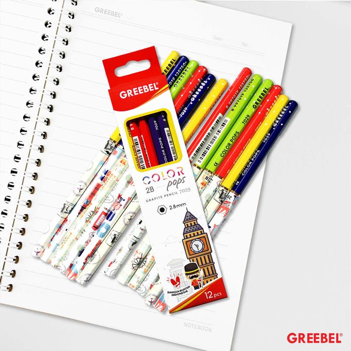 GREEBEL Pensil kayu 2B 7029 COLOR POP/Pencil Kayu Karakter/Grafit/Graphite tdk beracun utk ujian sekolah/gambar - 12 pcs
