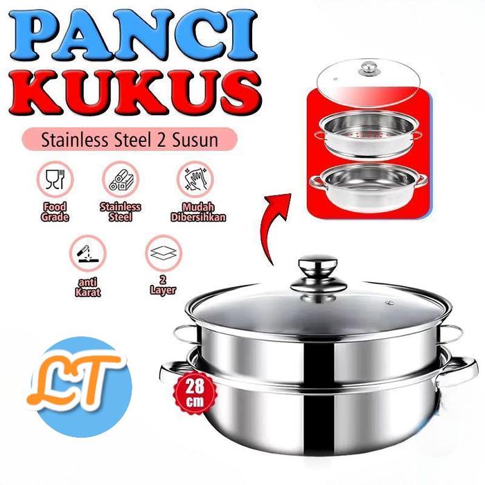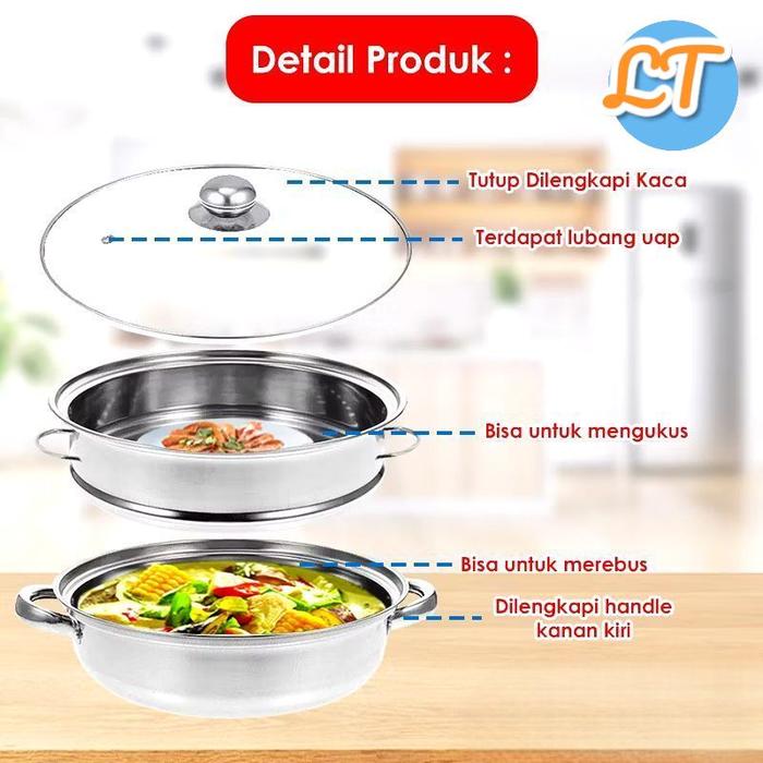 (LT.ID) Panci Kukus 2 Tingkat Stainless Steel Tutup Kaca