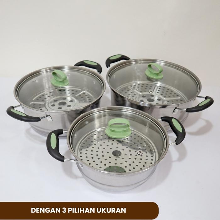 IZUMA Panci Pengukus Stainless / Panci Stainless Kukus Panci Streamer Serbaguna Aluminium - 22cm