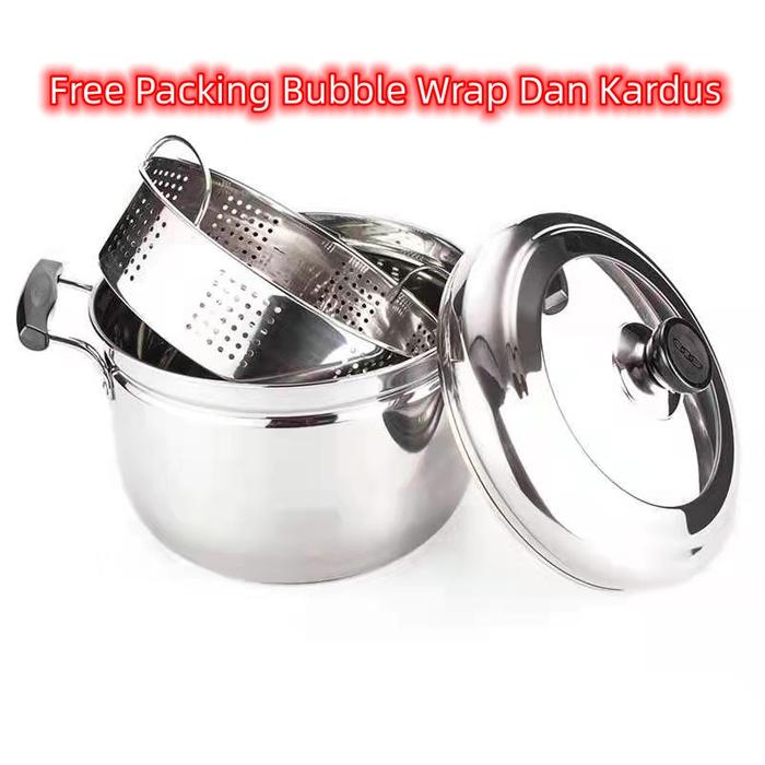 PANCI KUKUS JAPAN STAINLESS STEAMER 24/26/28CM- PANCI PANCA GUNA DENGAN TUTUP KACA TEBAL - PANCI SET - 24CM