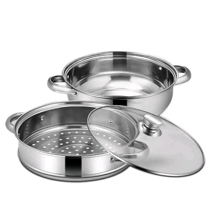 Panci Kukus 2 Tingkat Stainless Steel dengan Tutup Kaca - Kitchenware