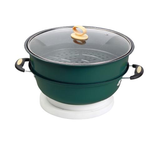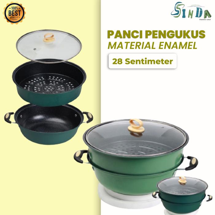 SINDA (c06) Panci Pengukus / Panci Steamer 2 Tingkat / Panci 2in1 Kaca - Hijau tua
