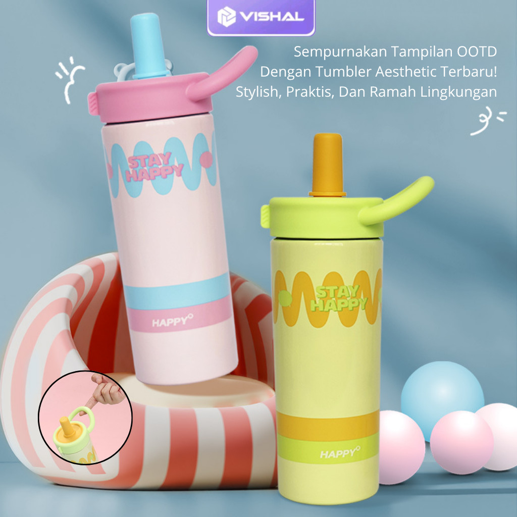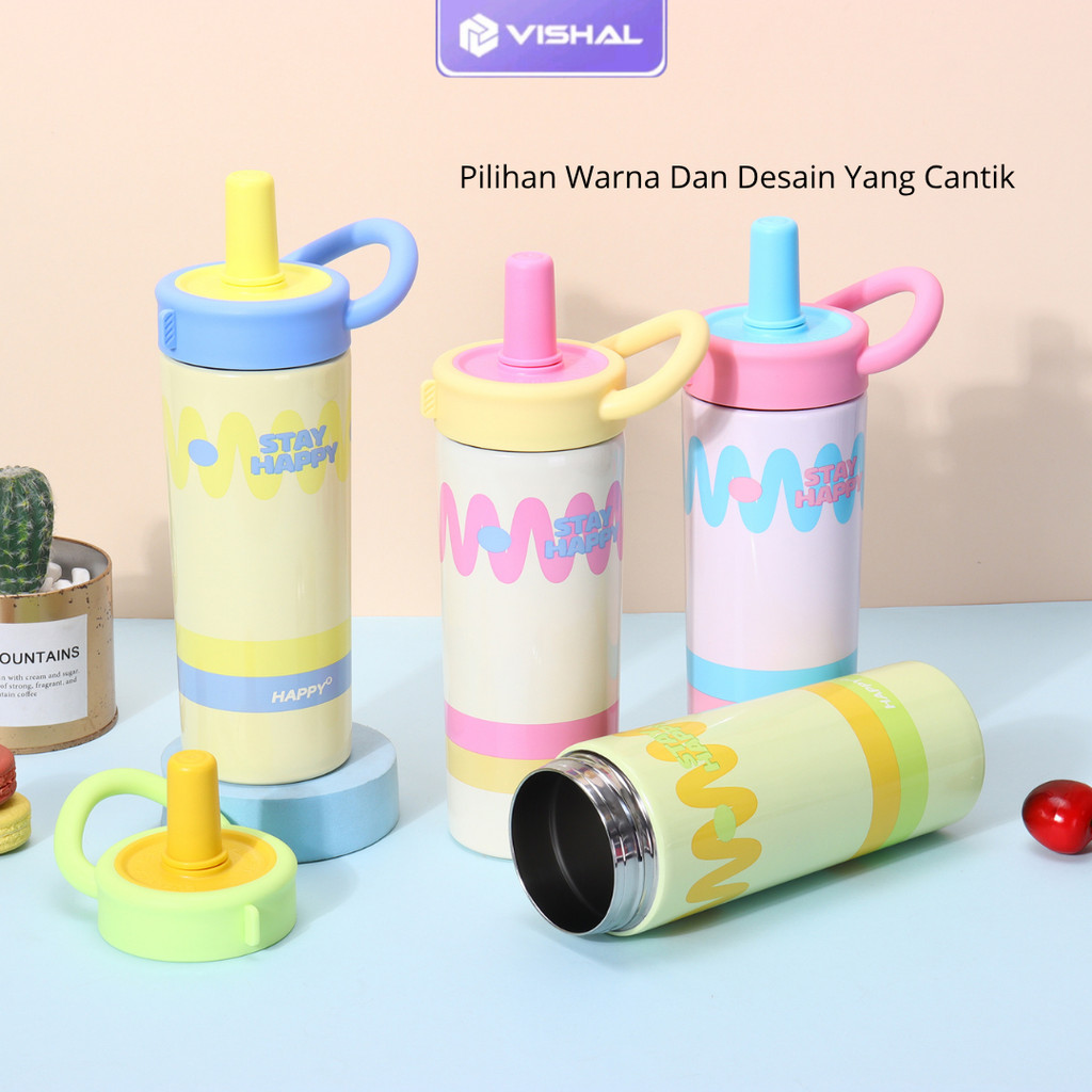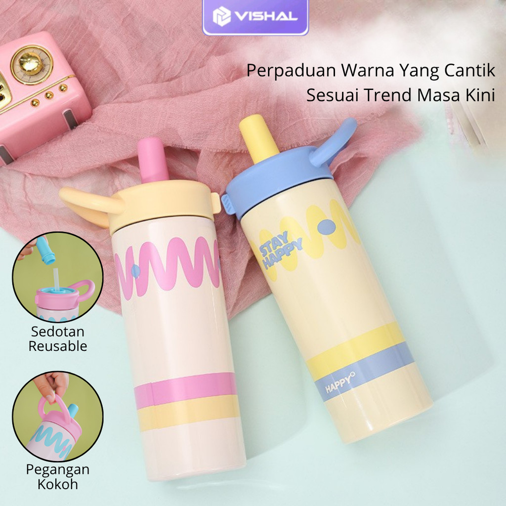 VISHAL Botol Minum Tumbler Colour Wave 600ml Stainless SUS316 dengan Sedotan Tahan Panas Dingin Anti Bocor