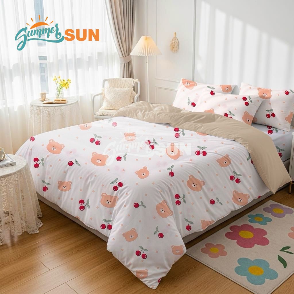 Bed Cover Set CherryBear Mix Plain Khaki - Summersun09