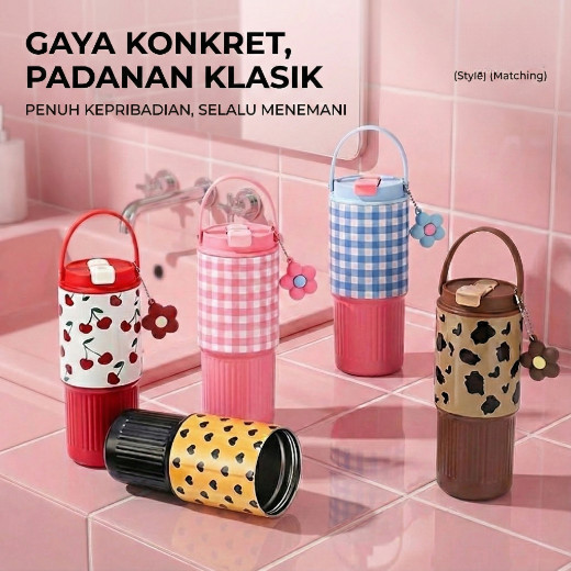 [Urban Living ID] Tumbler Stainless 750ml Kapasitas Besar Karakter Lucu [Free Gantungan] Tahan Panas Dingin