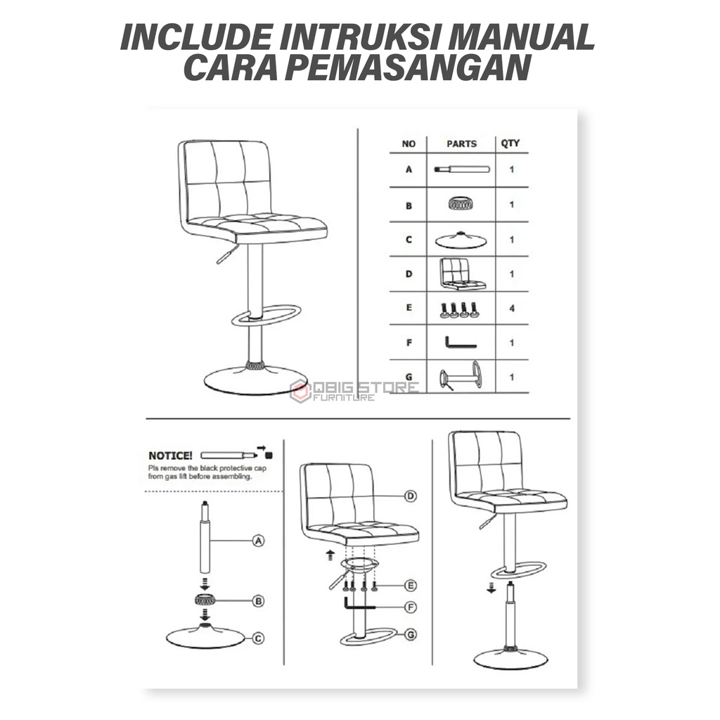 Kursi Bar Hidrolik / Kursi Bar Hydraulic Bar Stool Bangku Cafe Makan