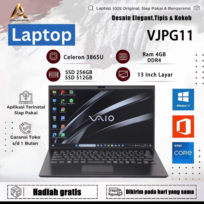 LAPTOP VAIO INTEL CORE I5 GEN 8 RAM 8GB SSD 256GB-512GB LAYAR 13 INCI WINDOWS 10/11 MULUS BERKUALITAS BERGARANSI MURAH UNTUK PELAJAR SEKOLAH - INTEL CELERON 3865U, RAM 4GB | SSD 256GB
