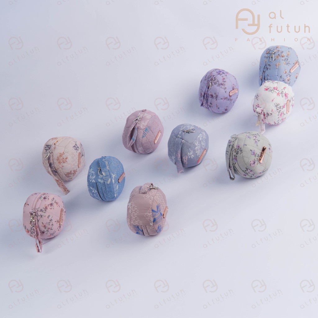 ALFUTUH - Mukena Travelling Mini Pouch Parasut Korea Premium Motif LaserCut Tas Bulat