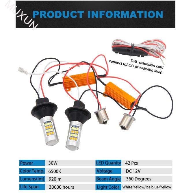 2pcs Lampu Led Drl/Sein T20 1156 42smd Model Ganda Warna Putih/Biru/Kuning Untuk Mobil