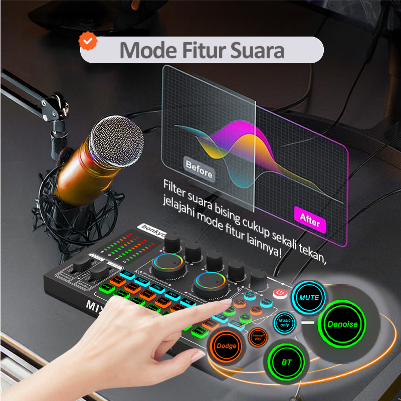 Bonkyo F999MAX Sound Card Bluetooth Live SoundCard F999MAX Soundcard Audio Live Mixer untuk Live streaming Karaoke
