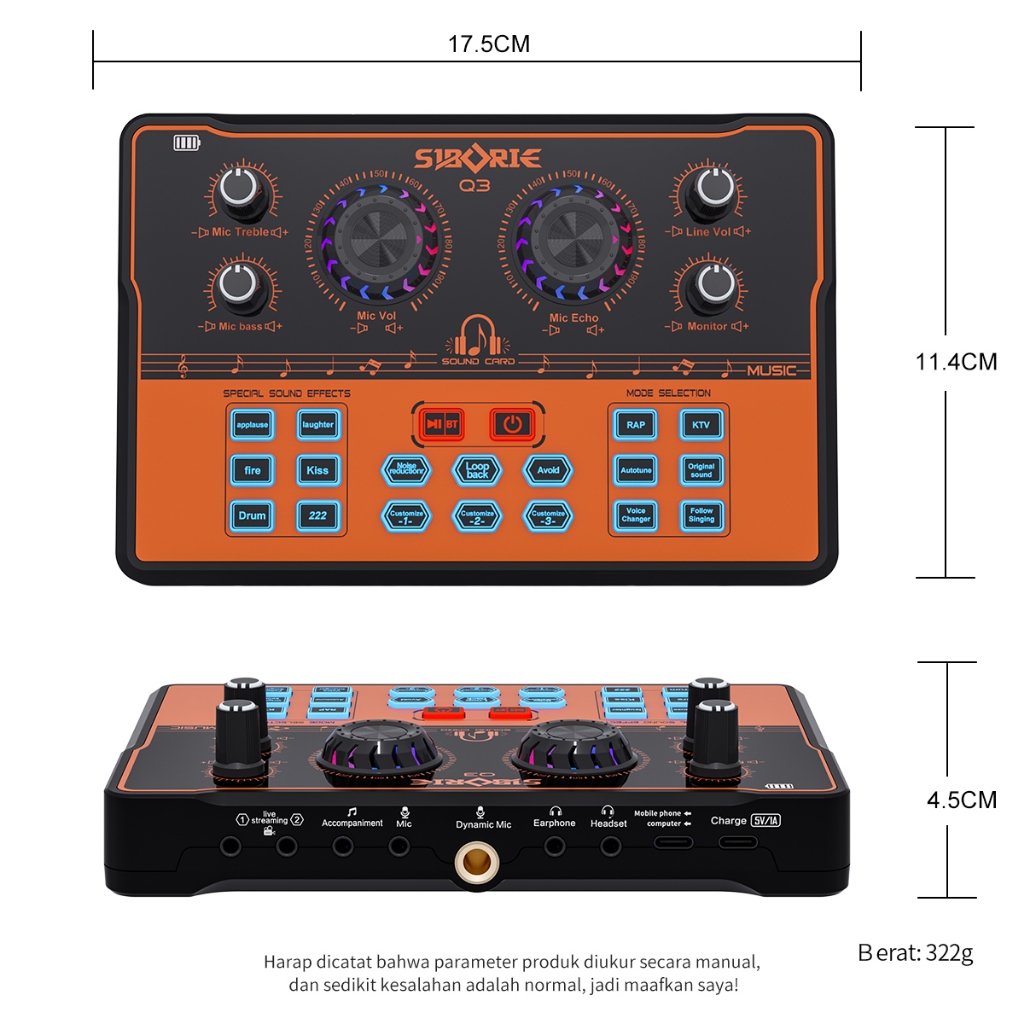 new Q3 Orange soundcard Mixer Bluetooth Sound Card for phone PC Karaoke Keluarga Audio USB External