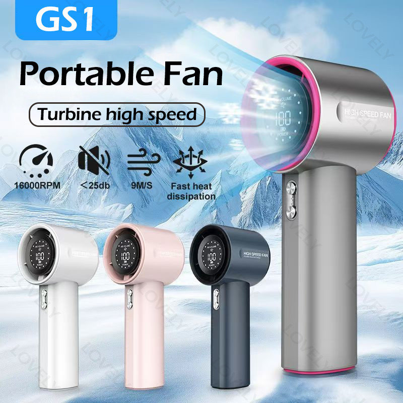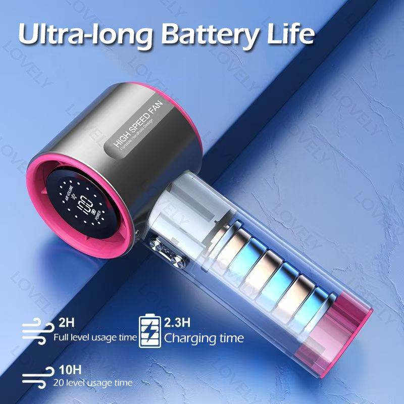 LOVELY Kipas Angin Portable Mini Turbo 13000RPM - Baterai Besar 3000mAh, 100 Level Angin, Desain Ringan, Cocok untuk Kantor & Sekolah