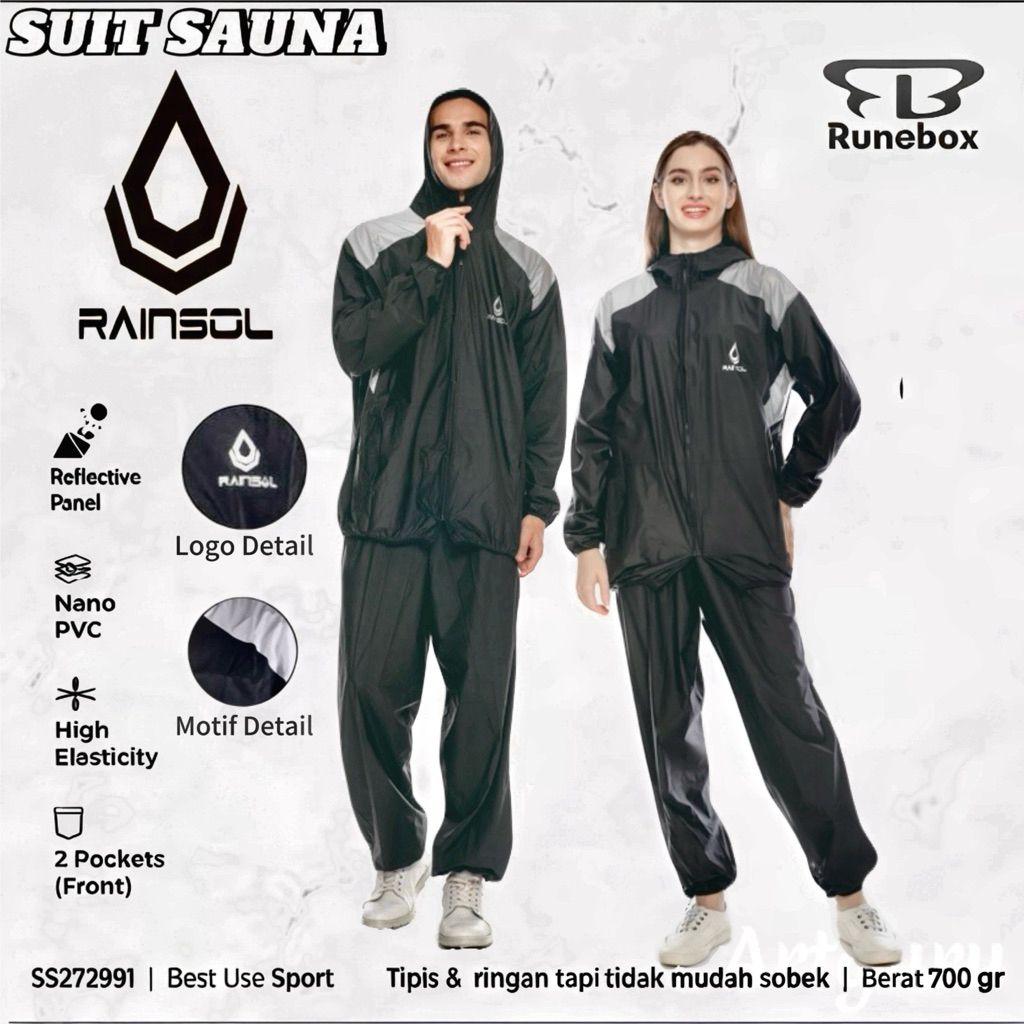 Rainsol Sauna Suit Running Sport | Jaket Sauna Olahraga Pembakar Lemak | Baju Sauna Jogging Setelan