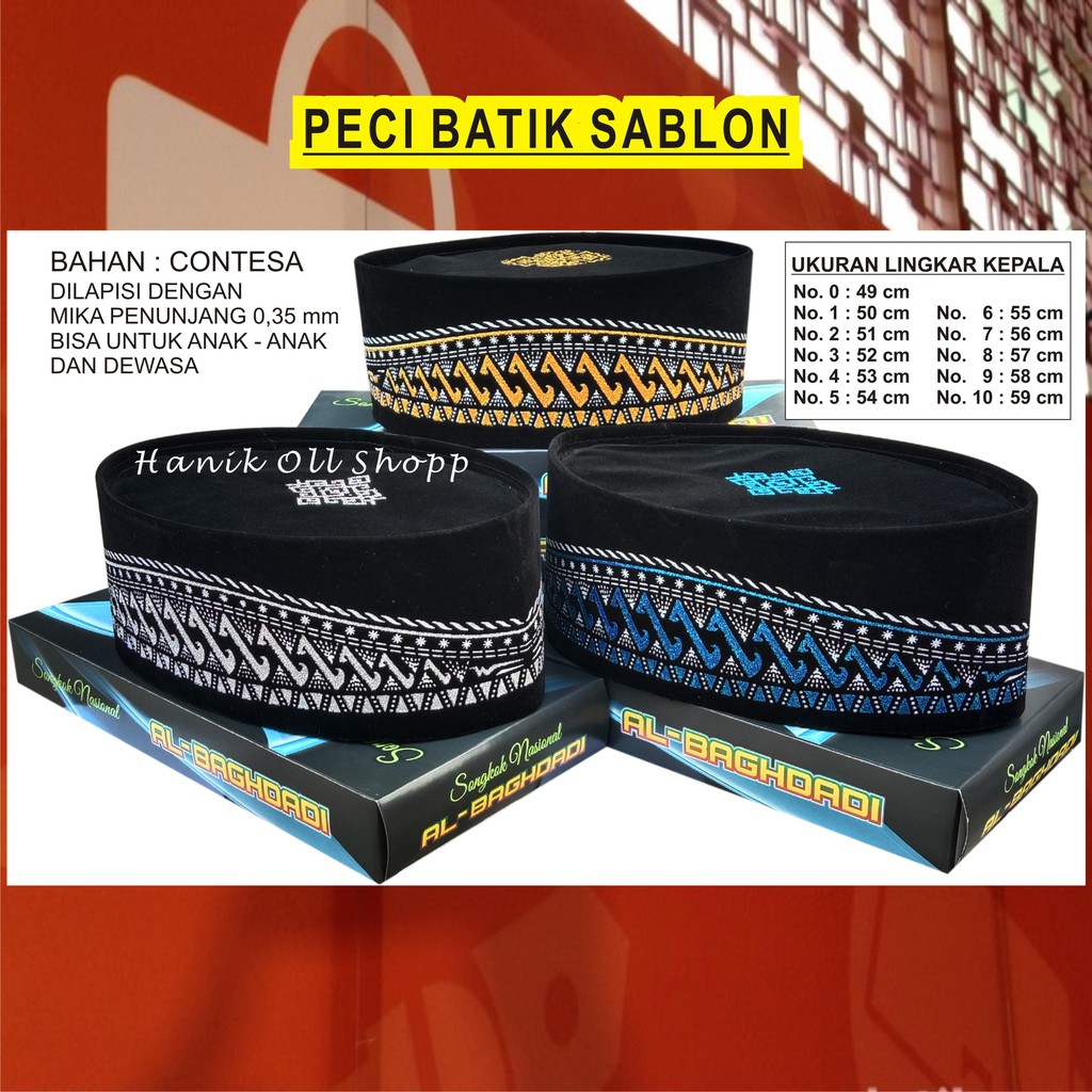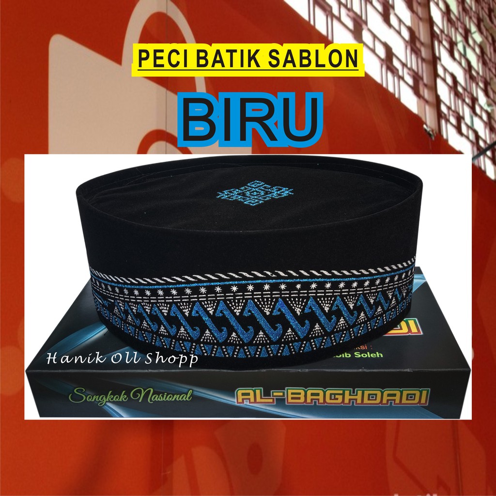 Peci Batik Sablon/Tinggi 9 cm/Anak Dewasa/Peci Hitam/Songkok Hitam/Kopiah Hitam/Peci Anak