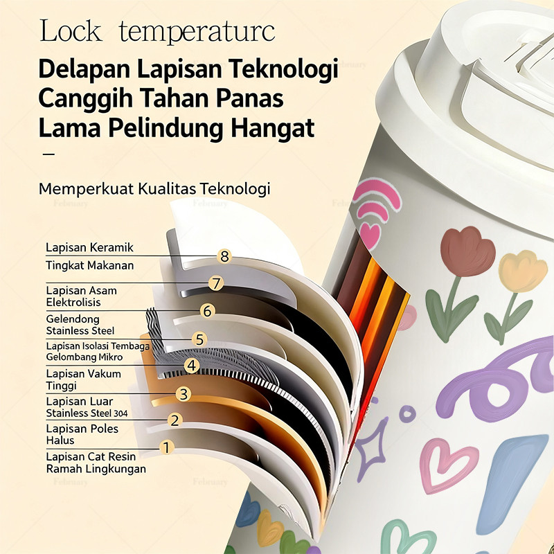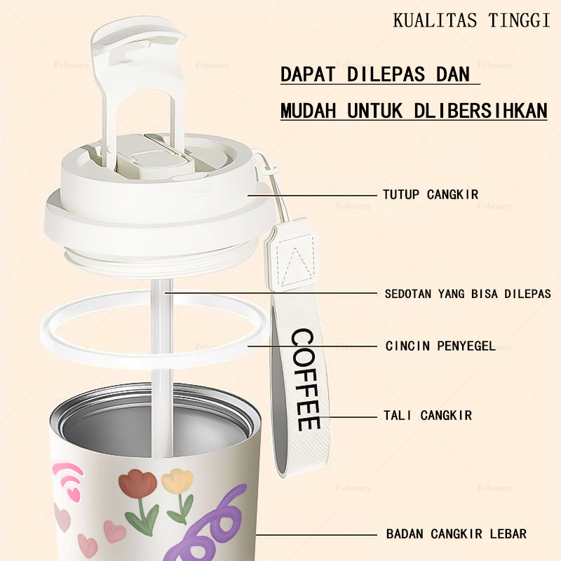 Tumbler stainless 316 sus 500ML tumbler aesthetic/tumbler viral/cangkir kopi/tumbler tahan panas dingin/botol minum/tumbler sedotan/tambler botol minum/tumbler pink lucu/LLB650SHHH