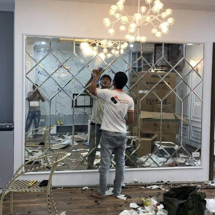 Cermin Bevel Motif Ketupat Anak Panah Cermin Tempel Diding