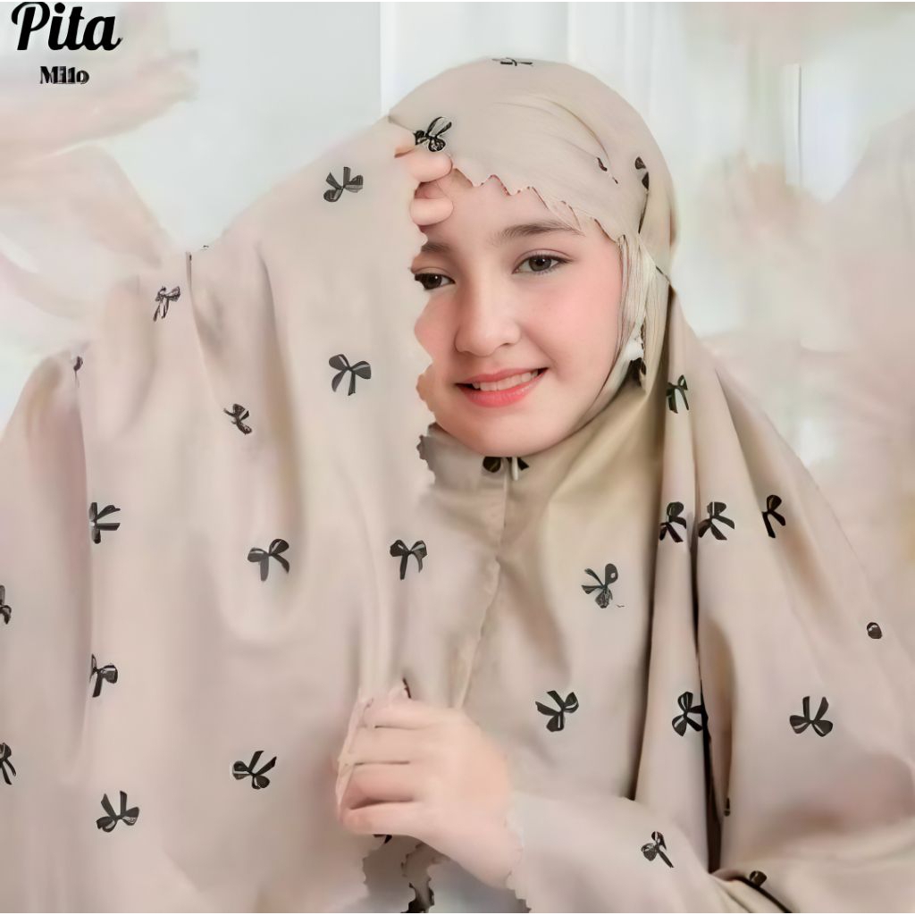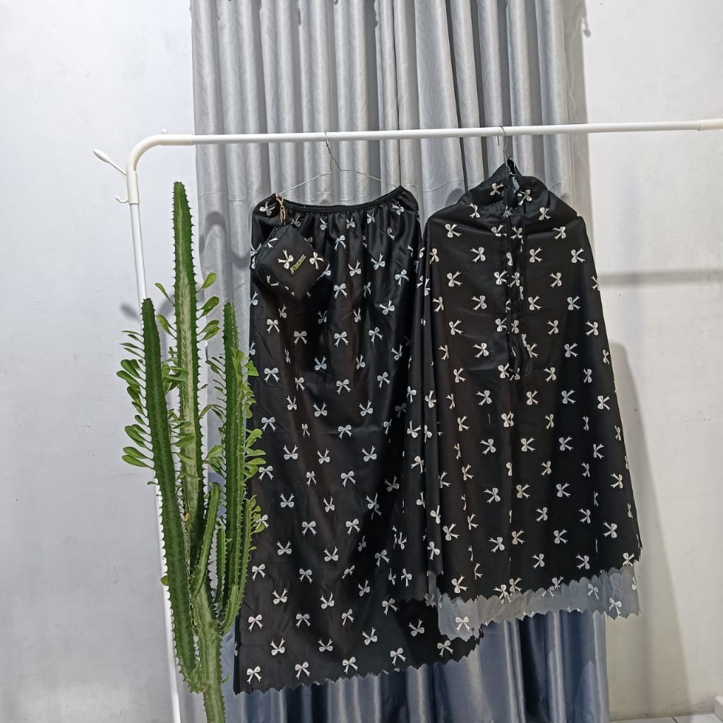 Mukena anak 2in1 motif pita katun mikro premium Lasercut travel usia 6 -12 thn