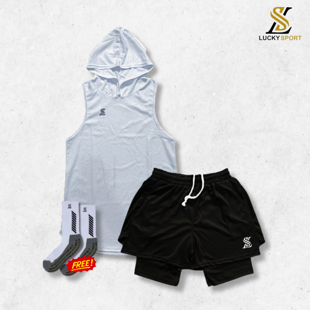 Jersey Singlet Hoodie Celana 2in1 Gratis Kaos Kaki Olahraga Basket Gym Running Voli Sports