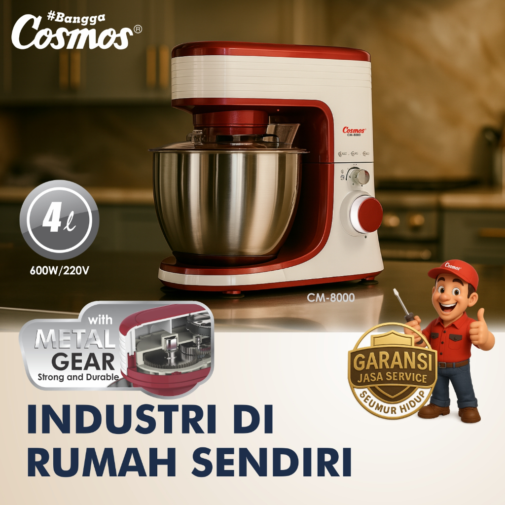 Cosmos Stand Mixer Cm-8000 (Dengan Metal Gear)