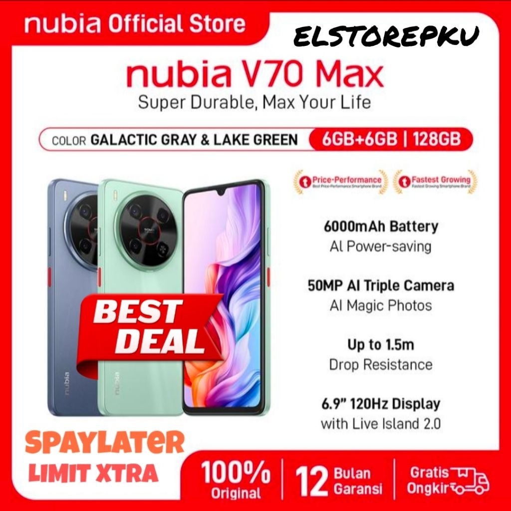 ZTE Nubia V70 Max 6/128 Ram Up to 12GB Unisoc T606 6000mah 22.5Watt Fast Charging Cam 50MP grs Resmi