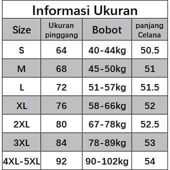 S=27(40-44kg), M=28(45-50kg), L=29(51-57kg), XL=31(58-66kg), 2XL=33(67-78kg), 3XL=36(79-89kg), 4XL-5XL=38(90-102kg)
