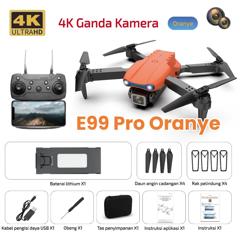 【𝑮𝑬𝑶𝑵𝑻𝑬𝑪𝑯】Drone E99 Pro Anti Tabrak Drone Kamera Jarak Jauh Murah Drone 4K Dual Kamera HD WiFi FPV Posisi Visual