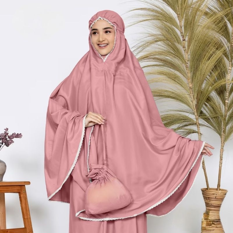 Mukena 2 in 1 traveling Resleting dagu safa dewasa terbaru polos katun adem pouch kecil / mukena sleting premium jumbo adem ringan travel mukena renda