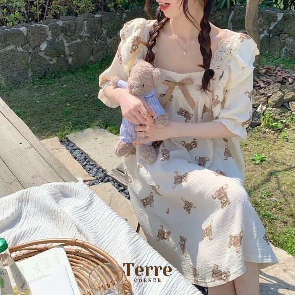Daster Aesthetic Baju Tidur Piyama Wanita Murah Kyu Ri Sleepwear Rok Tidur Import Korean Style Motif Bear Vintage Kekini