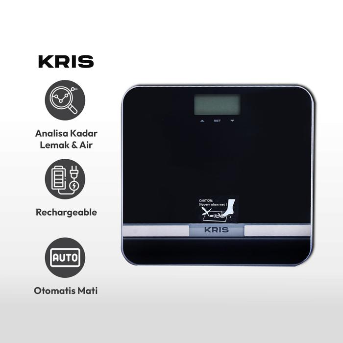 KRIS TIMBANGAN BADAN DIGITAL BODY FAT HYDRATION RECHARGEABLE - HITAM
