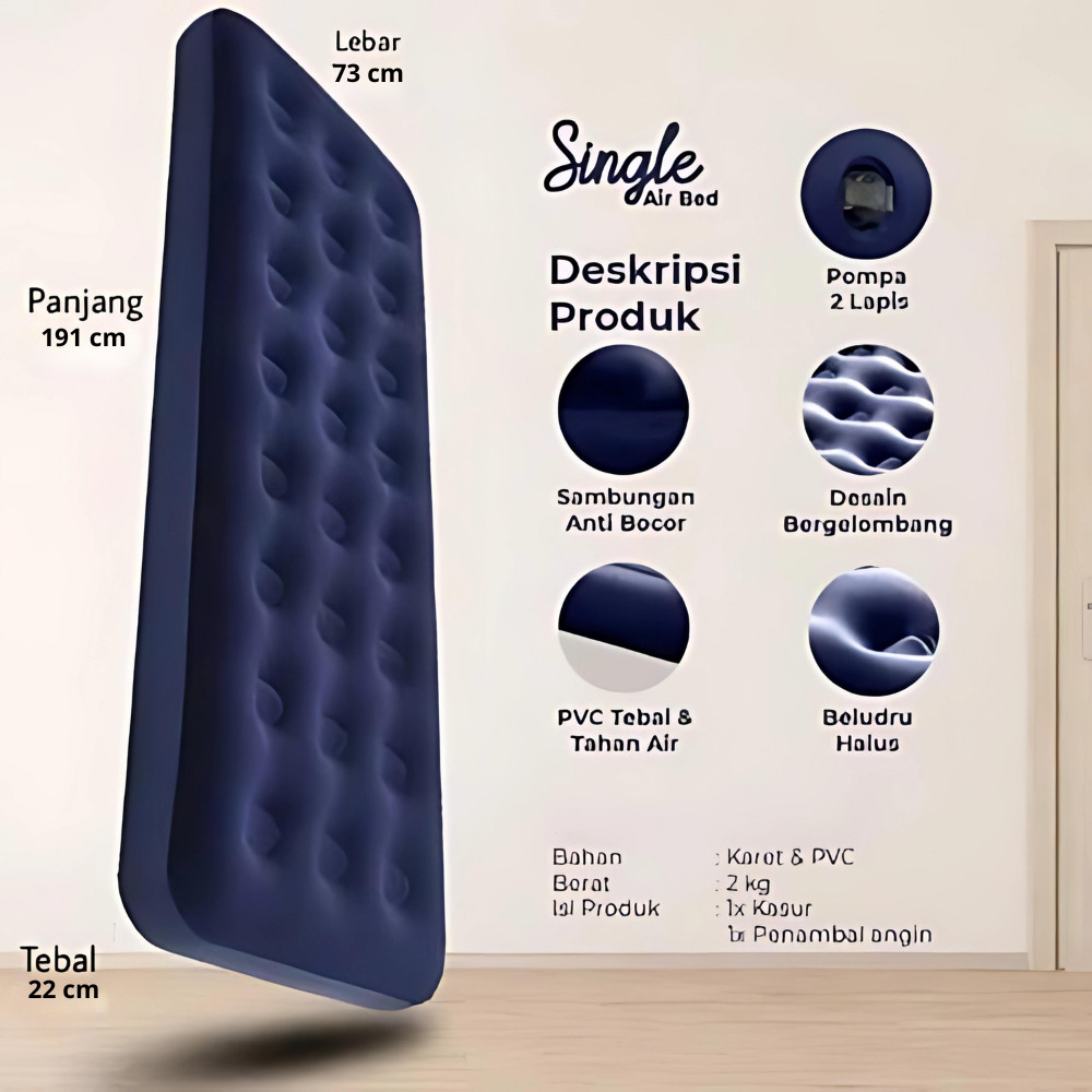 Enterkolam Kasur Angin single Air Bed Matras Kamar Anti Kempes,Berkualitas + POMPA