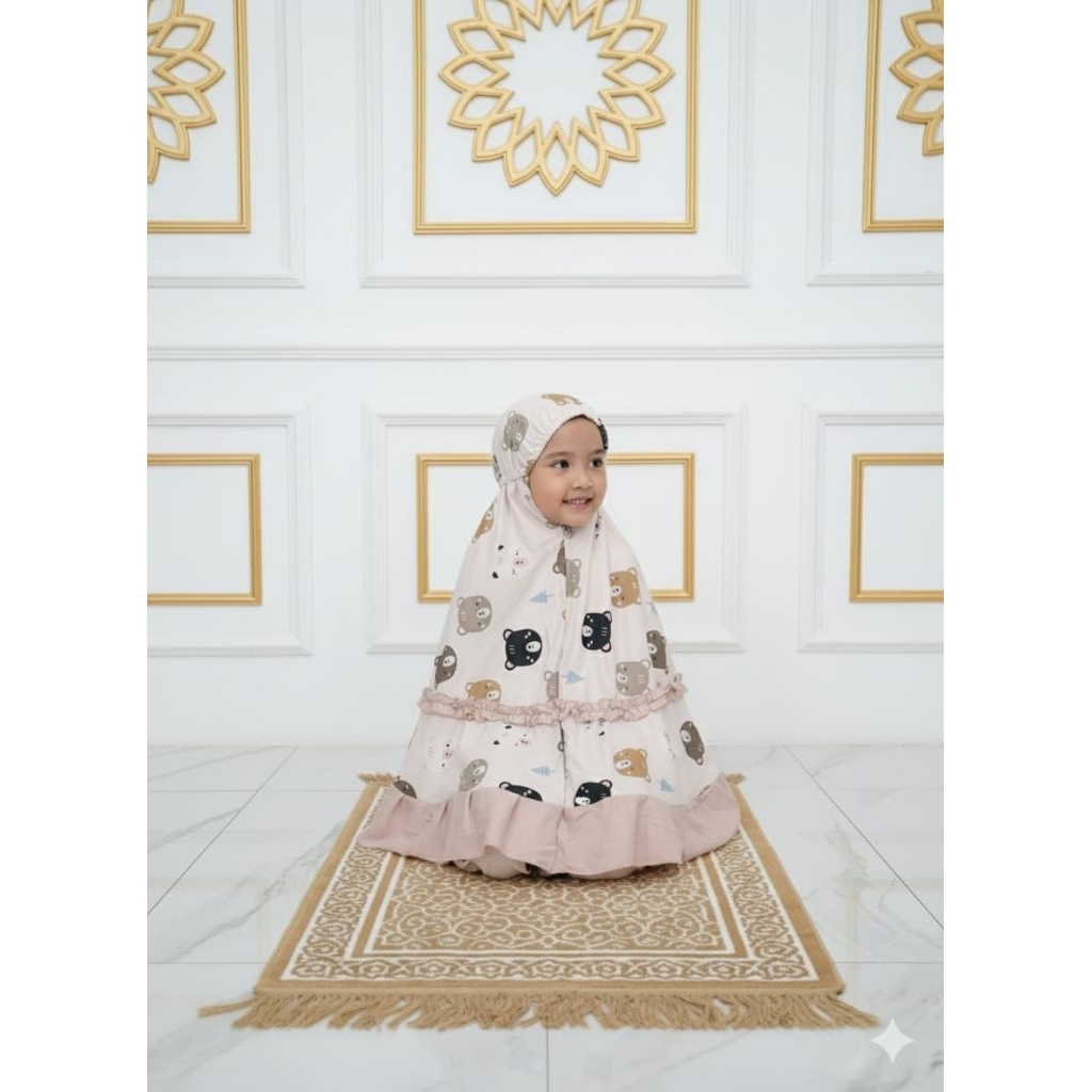 Mukena anak 3in1 motif karakter 3-9 tahun tas ransel bisa jadi sejadah bahan katun premium