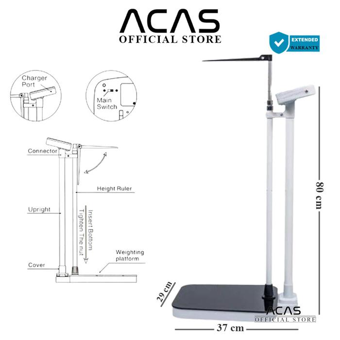 ACAS RTC-200 TIMBANGAN BADAN 200KG / 200GR DIGITAL TIMBANG BERAT BADAN PENGUKUR TINGGI / PANJANG BADAN ALAT UKUR TIMBANGAN POSYANDU PUSKESMAS MEDIS KAPASITAS 200 KG