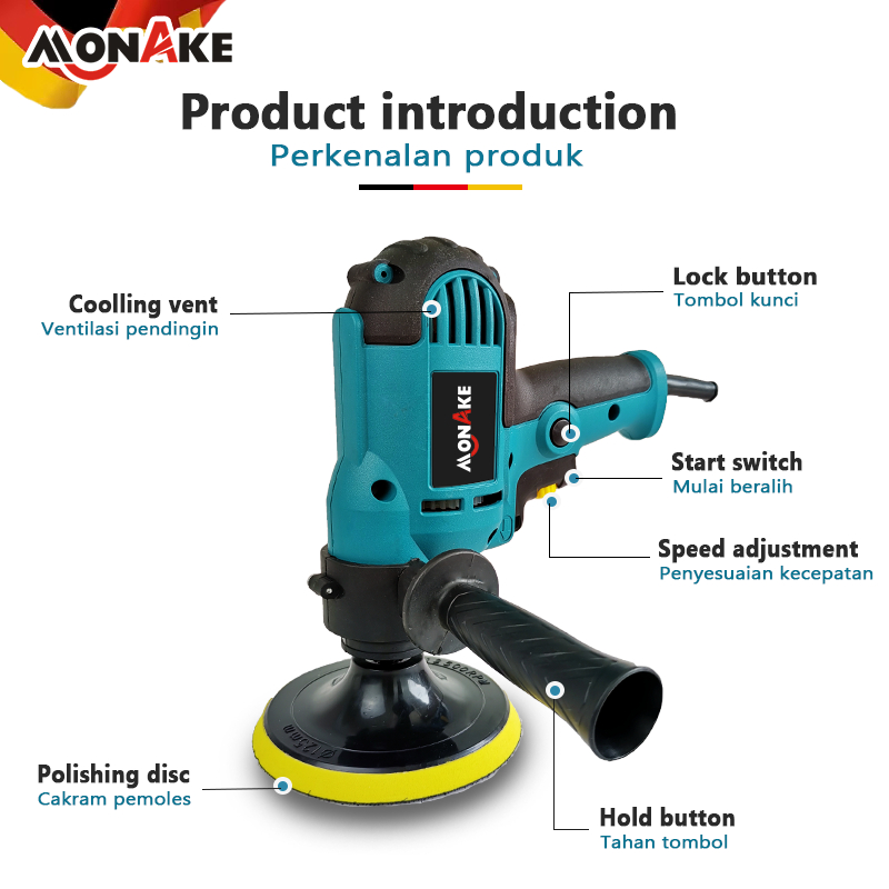 MONAKE Mesin Poles Mobil Polisher 5 INCH Alat Poles Cat Mobil Full Set Car Alat Disc Disk kaca motor
