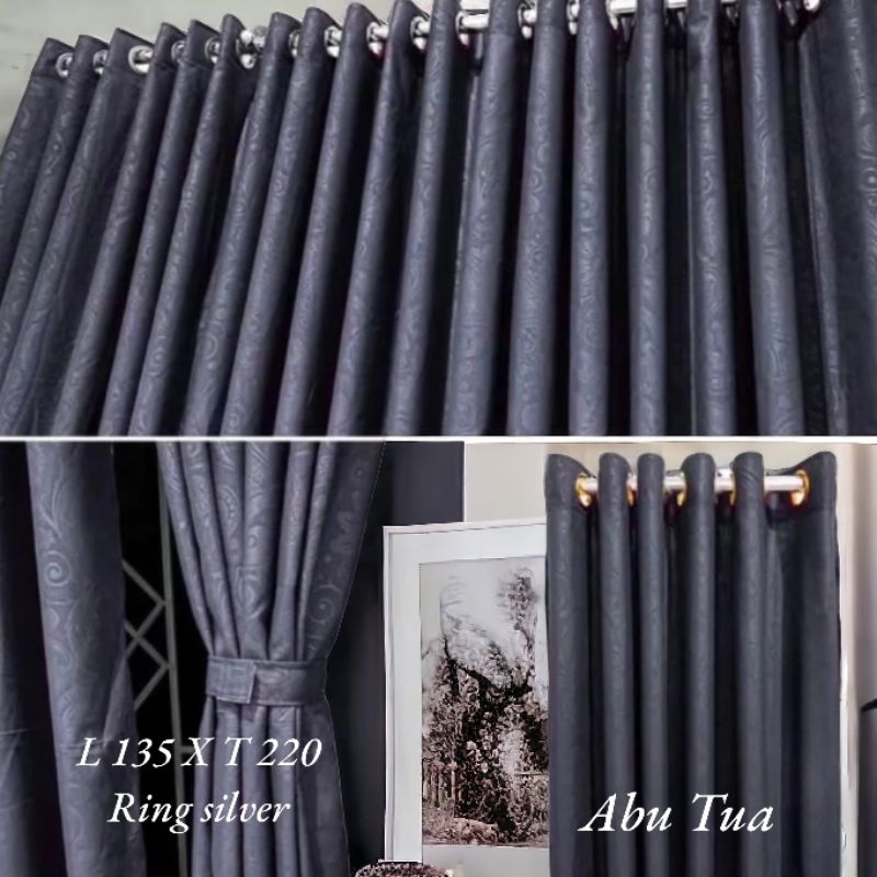 Gorden Pintu Jendela Minimalis Smokring 12 Ring/Lubang Embos Abu Tua