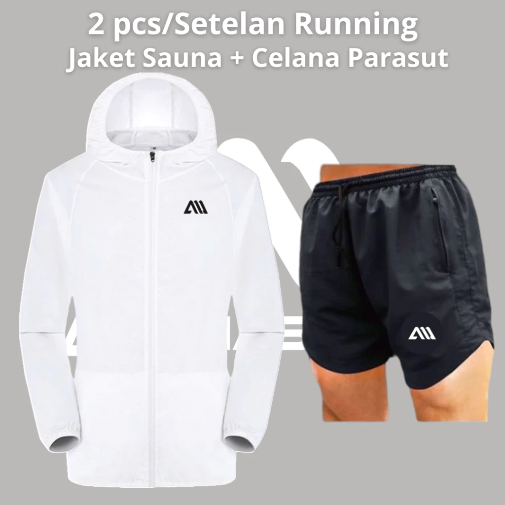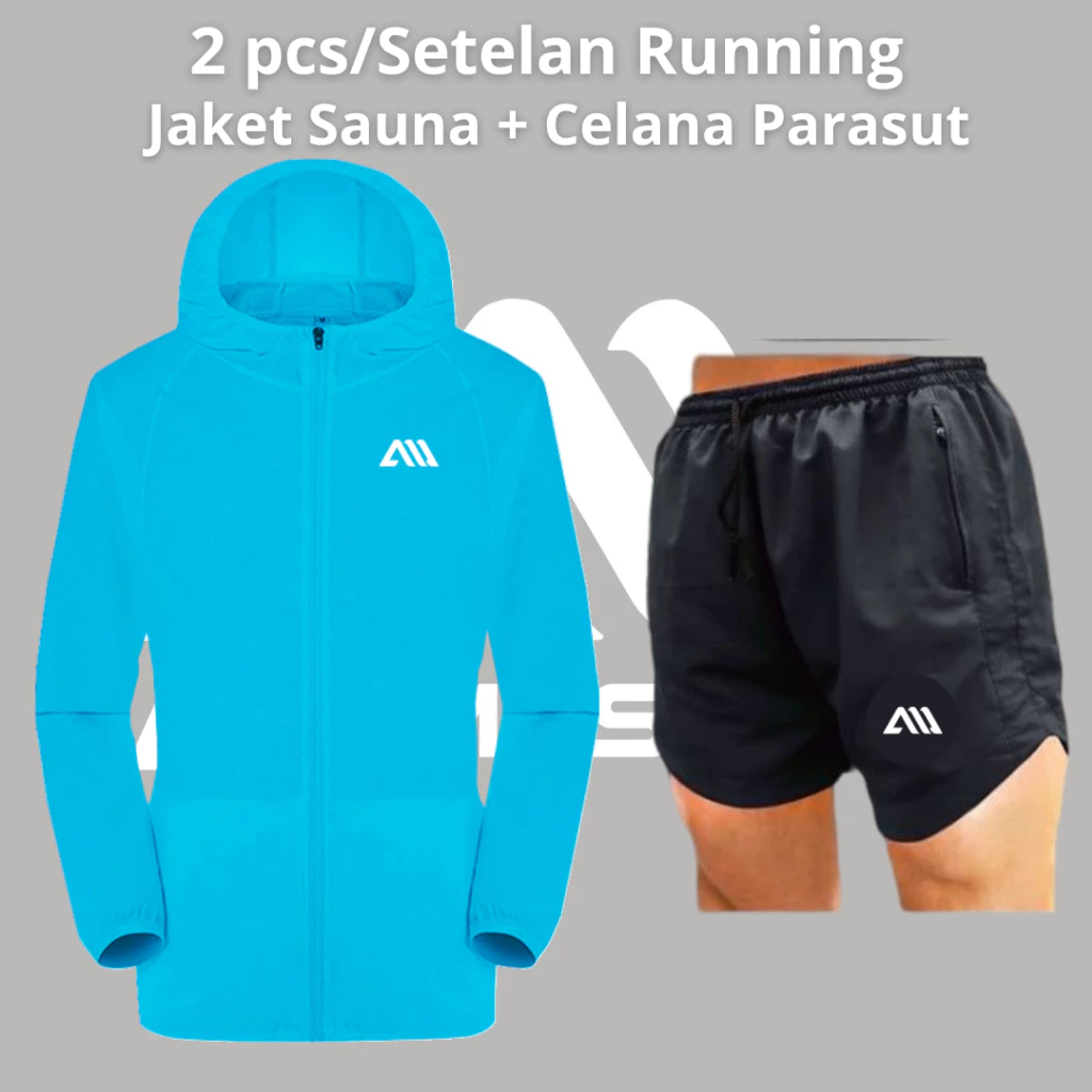 2 in 1 Jaket Sauna dan Celana Running Perasut Setelan lari despo metalik