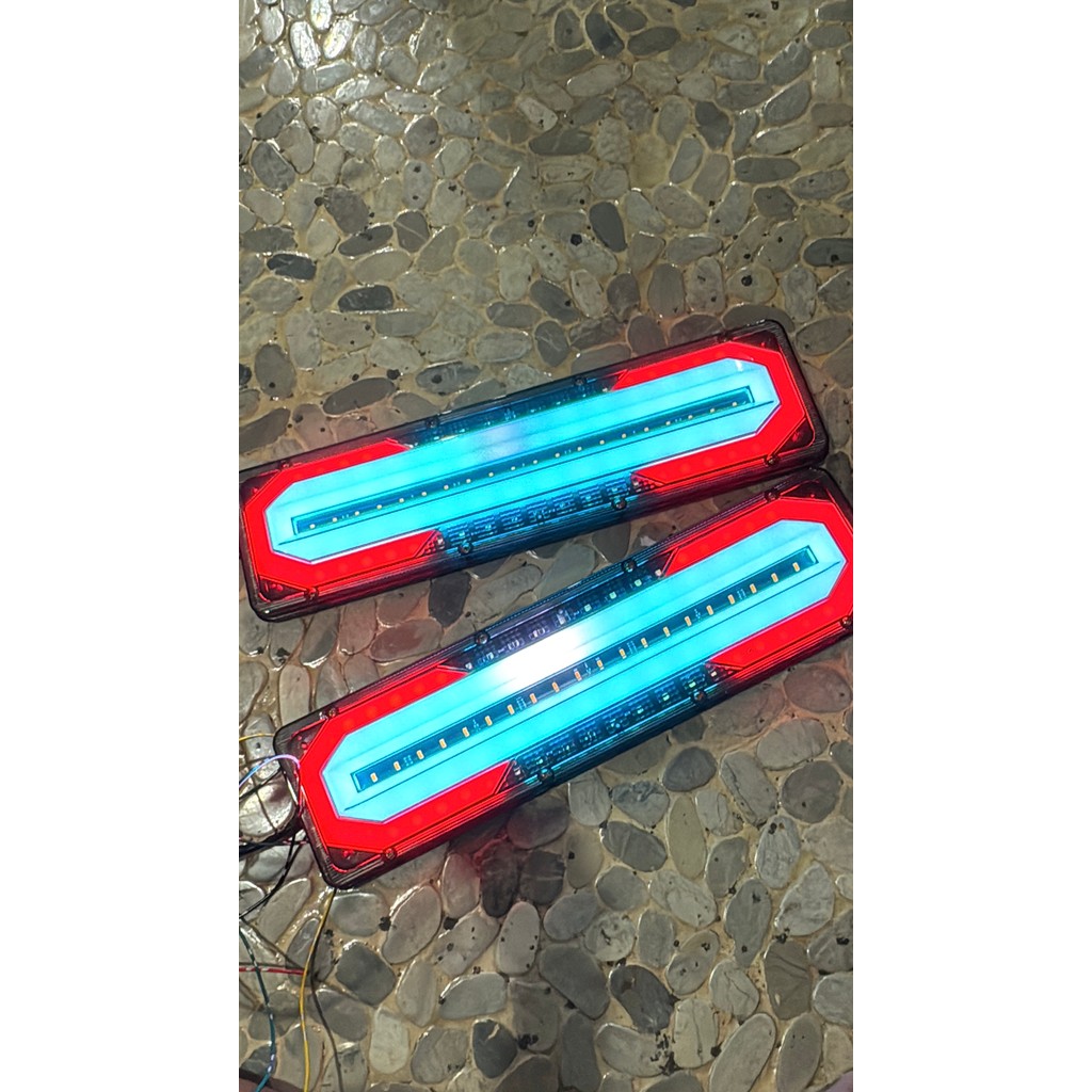 SEPASANG Stop Lamp Truk 12-24 Volt Senja Nyala Rgb Rem Kedip Model Kotak 366