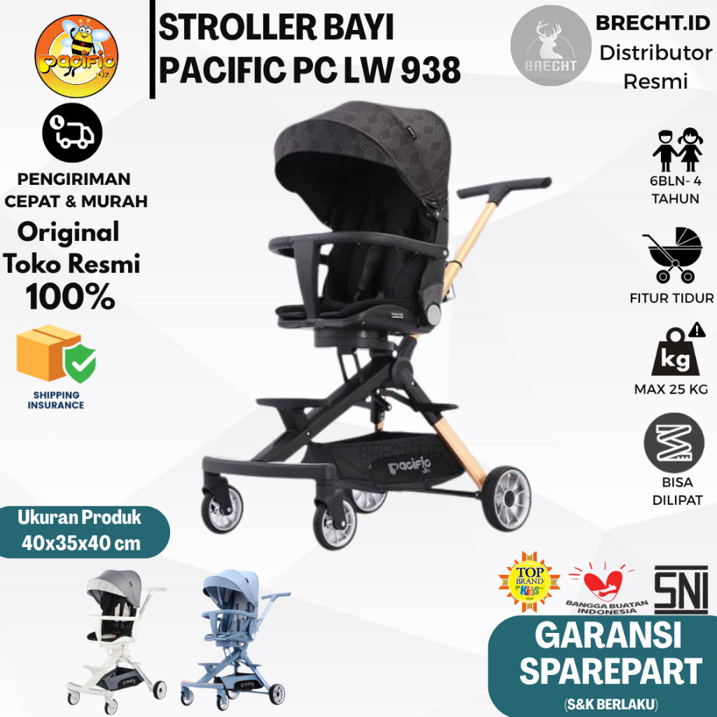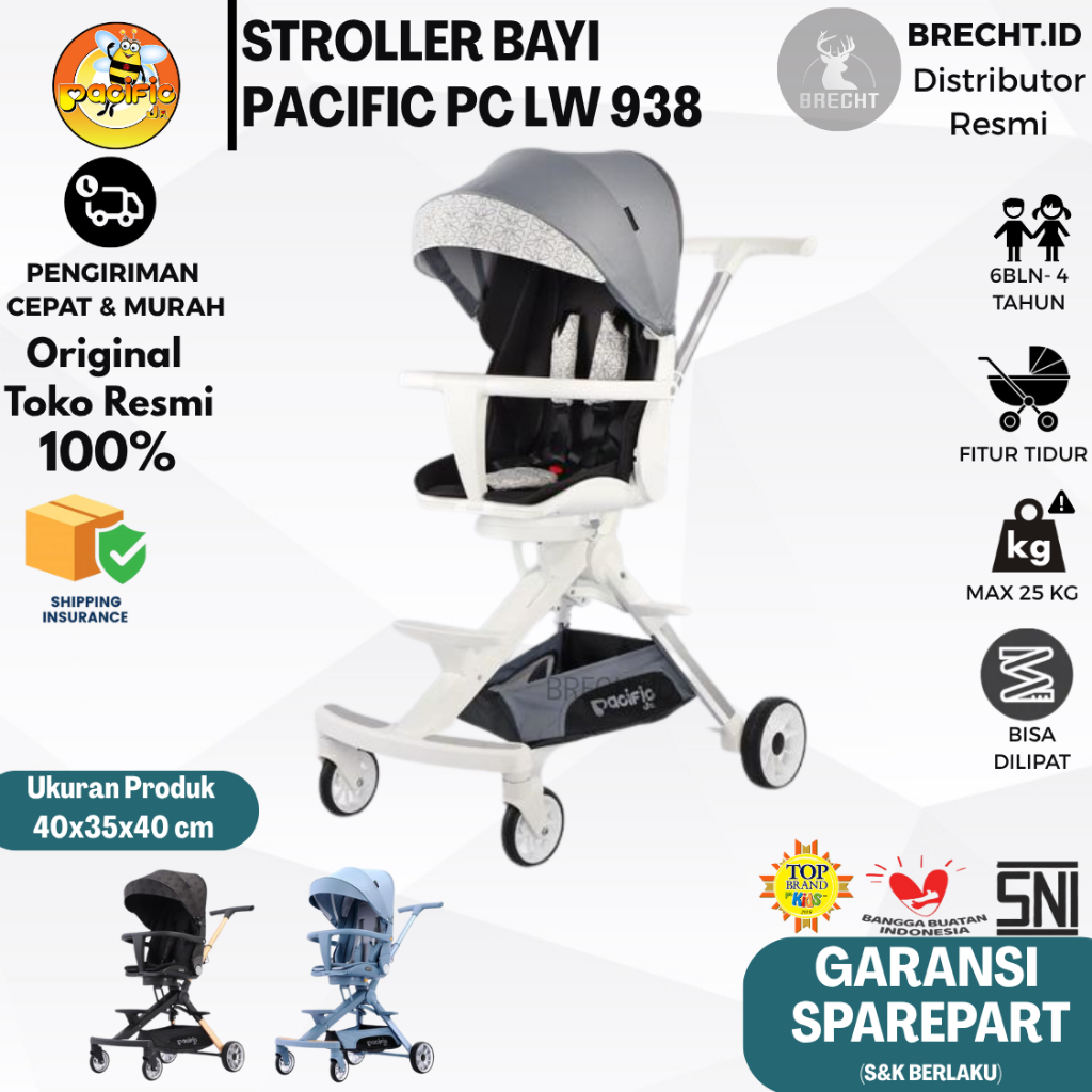 Stroller Anak dan Balita Praktis Pacific LW 938 Alloy Bisa Tidur dan Diputar 360 Derajat PC-LW 938