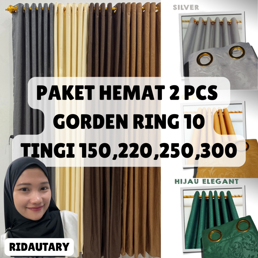 QAMRA X RIDAUTARY PAKET HEMAT 2 PCS GORDEN JENDELA DAN PINTU TINGGI 150,220,250,300 SMOKRING 10 LUBANG