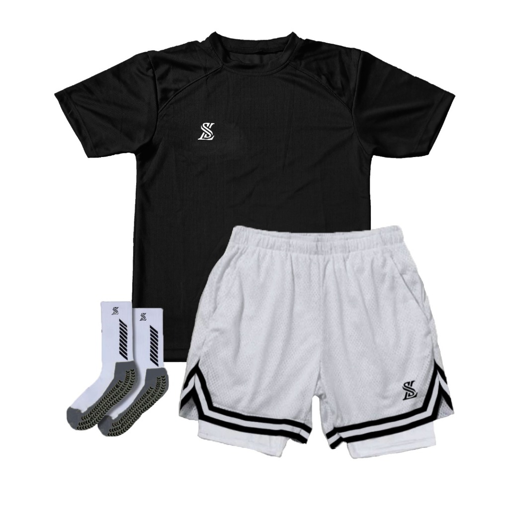 Stelan Baju Jersey Olahraga Celana 2in1 Basket Running dan Kaoskaki Sport Antislip Luckysport