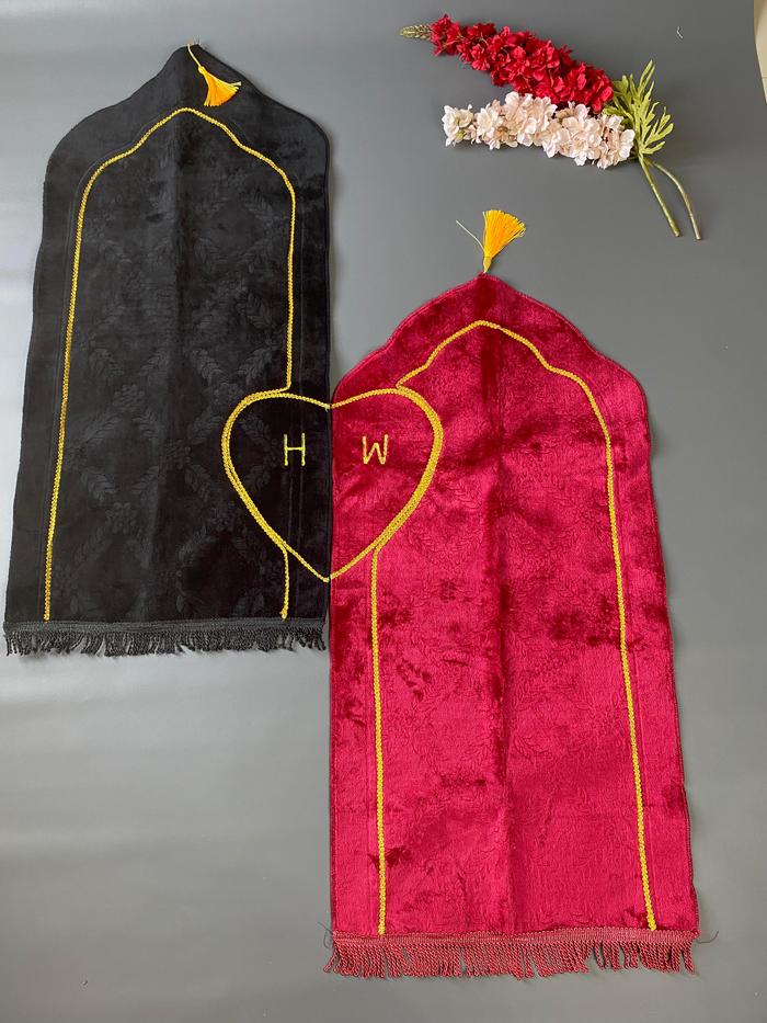 SAJADAH COUPLE TRAVEL KUBAH POLOS ANTI SLIP, SAJADAH COUPLE LOVE UK 100X50 CM (SUDAH DAPAT 2 )