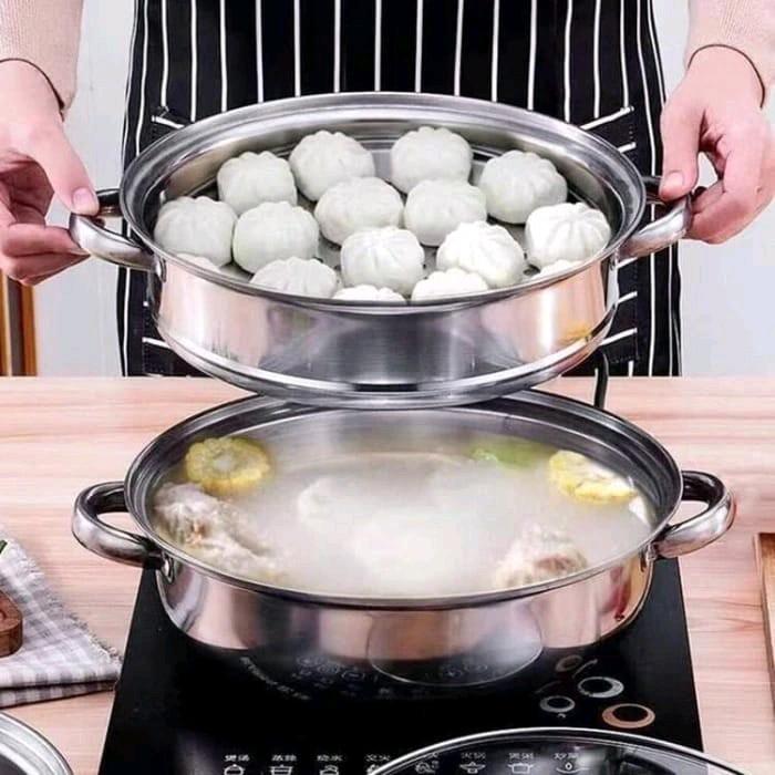 LT Panci Stemer Kukus 2 Susun Pengukus Stainless Steel 28cm Alat Dapur